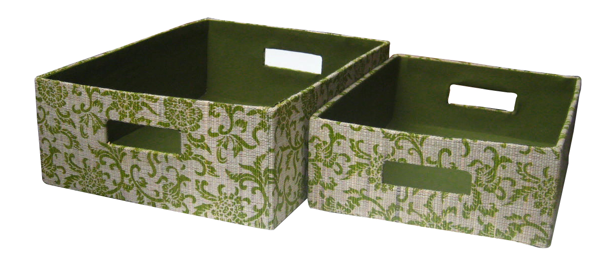 You can buy these whether in piece or sets. These superb set of 2 rectangular boxes with cut-out handles and green batik lid are also available on color.